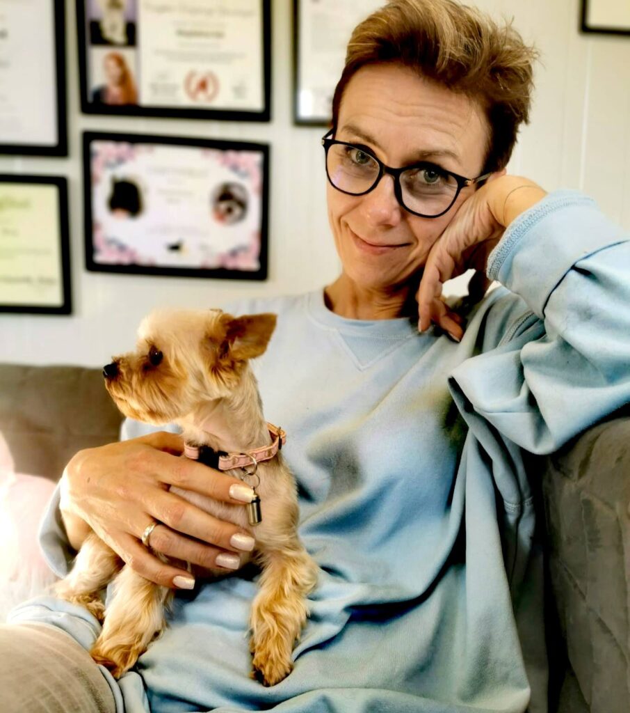• Dyplomowane kompetencje behawiorysty, które pozwalają mi uczyć bezstresowej pracy z psem (Grooming Relacyjny).